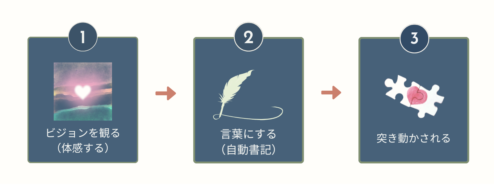 ※パーソナルクレド®とシンボルを湧き上がらせるのは【自動書記】という手法を使います、それは思考やエゴを取り去った雑念の無い状態。頭で考える(理性)ではなく、心で感じる(感性)に働きかける手法をとります。