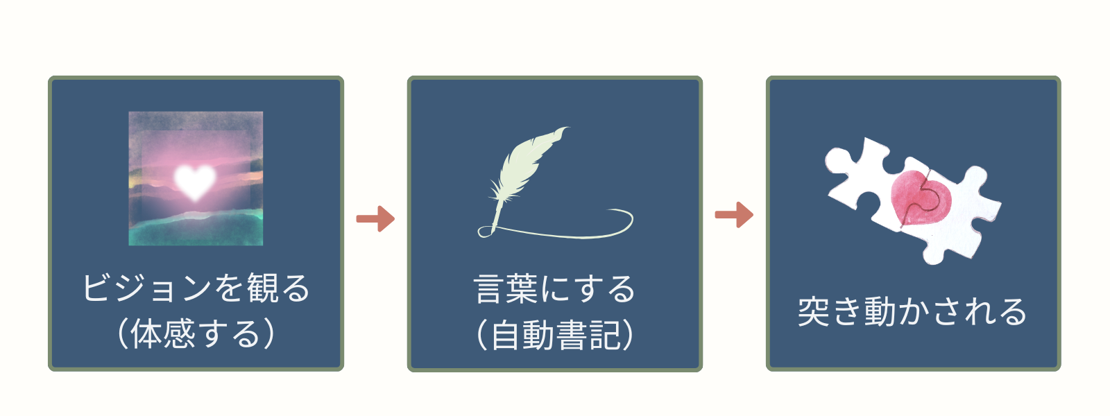 ※パーソナルクレド®とシンボルを湧き上がらせるのは【自動書記】という手法を使います、それは思考やエゴを取り去った雑念の無い状態。頭で考える(理性)ではなく、心で感じる(感性)に働きかける手法をとります。
